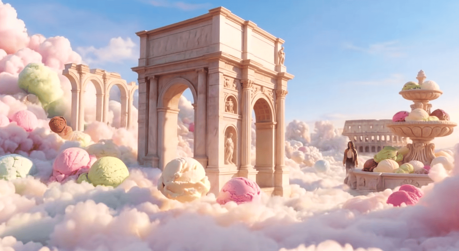 The “First:30” ad follows a woman in an Alaska Airlines suite who is transformed into a dreamy version of Rome and London. She enjoys a dreamy tea reminiscent of London, and then sees large ice cream cones and landmarks reminiscent of Rome. The journey ends with her enjoying an ice cream dessert on her bedroom rollaway bed.