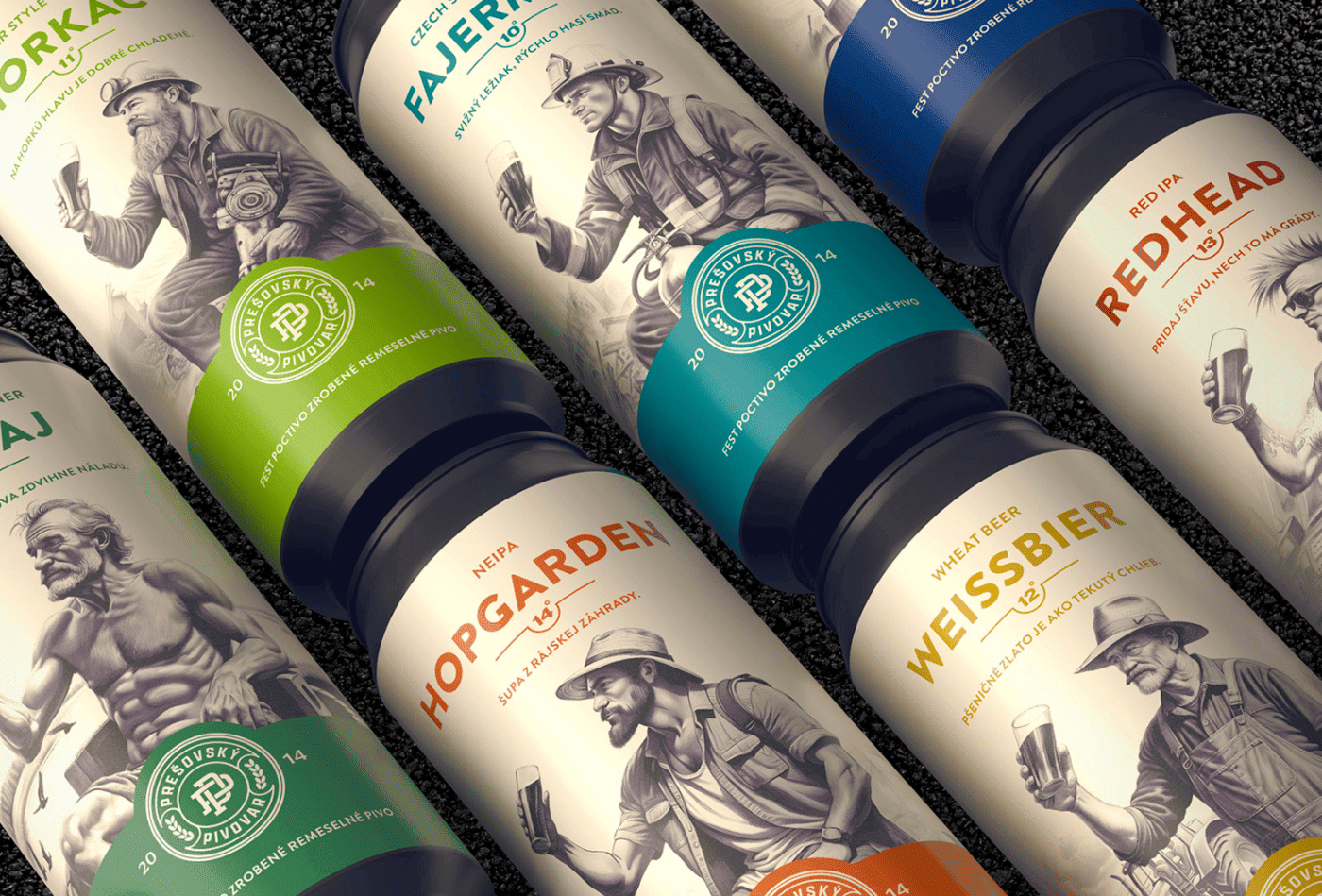 Design and production of canned packaging for a craft brewery based in Prešov. The project included the creation of a comprehensive brand identity and the updating of the logo, name, and wording to create a cohesive and consistent visual system across the entire product line.