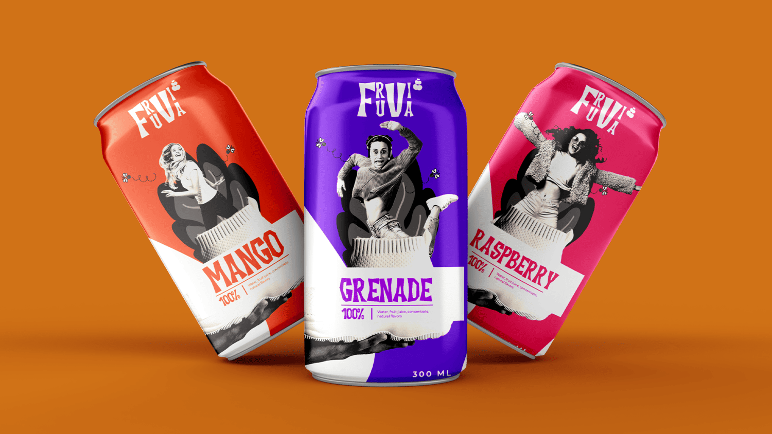 From bright orange mango to dark red pomegranate, each design reflects the unique character of the fruit while appealing to a young, health-conscious audience. Fruvia is a celebration of vitality, energy, and nature, embodied in a dynamic and modern design.