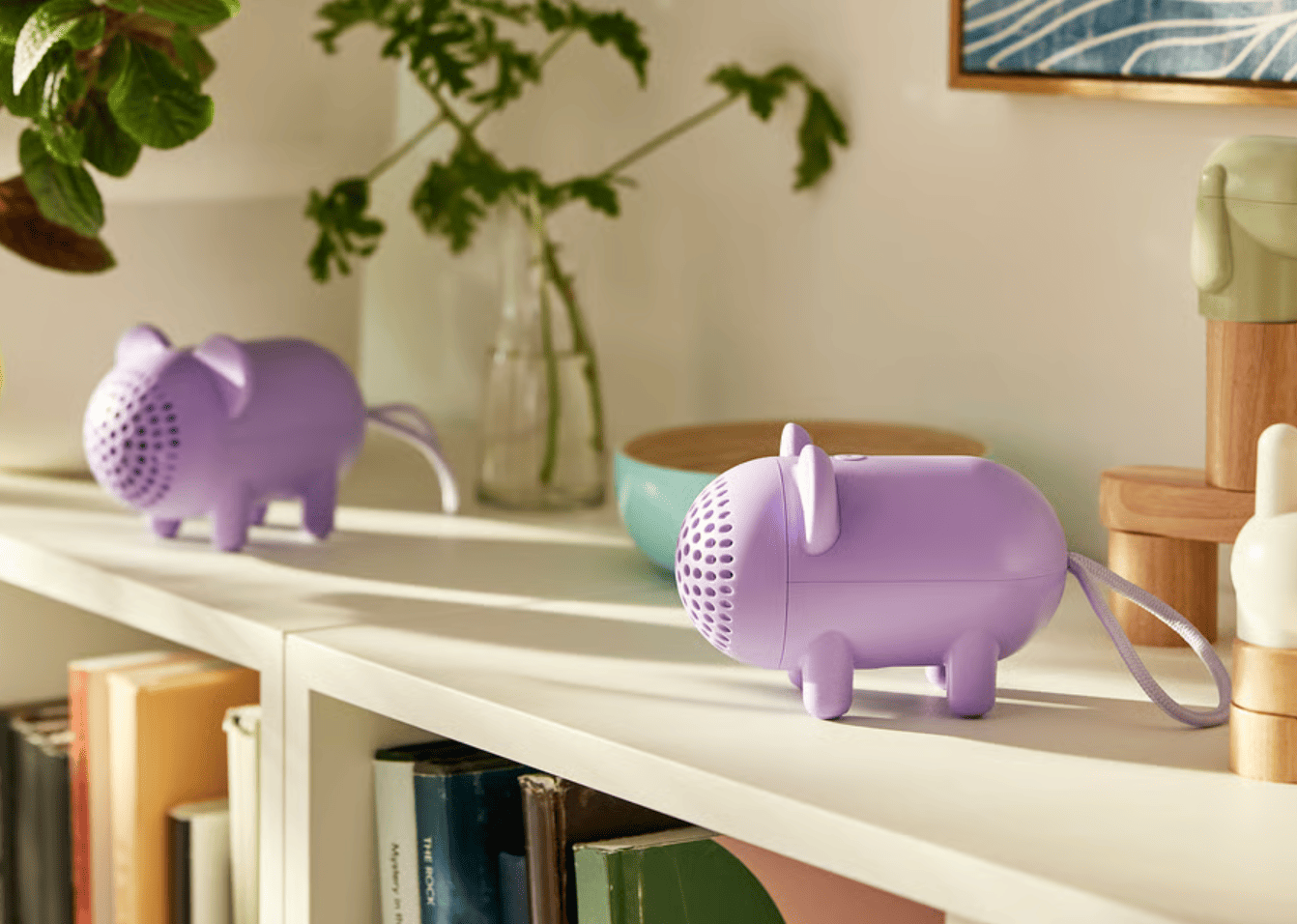 IKEA has expanded its range of sound systems with the introduction of the “Grejsimojs” model. This compact “Bluetooth” speaker features a kid-friendly design – a purple mouse with ears and a looped tail.