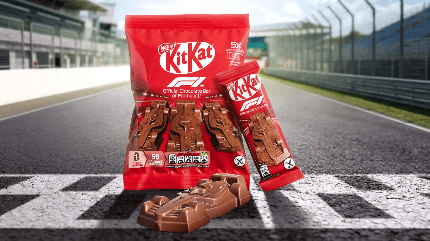KitKat plans to release limited edition miniature chocolate Formula 1 cars in supermarkets across the UK and Ireland, so fans can take home their own tiny version. The campaign will also feature on-track activations at selected races, merchandise and prize promotions, and advertising tied to the Netflix series Drive to Survive.
