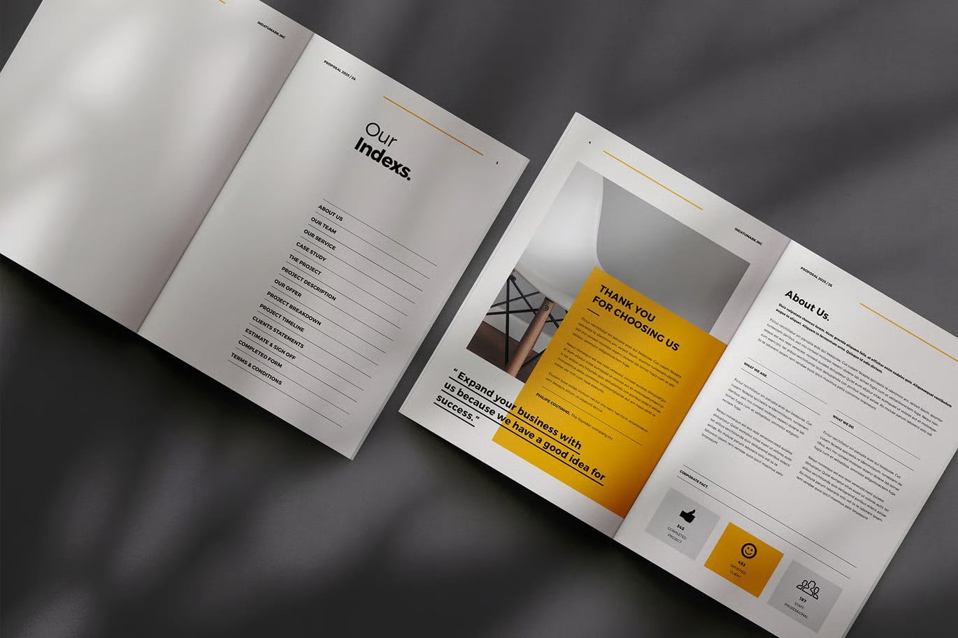 Clean, business project proposal template. Fully customization and super easy to use via Adobe InDesign to fit any kind of business use.